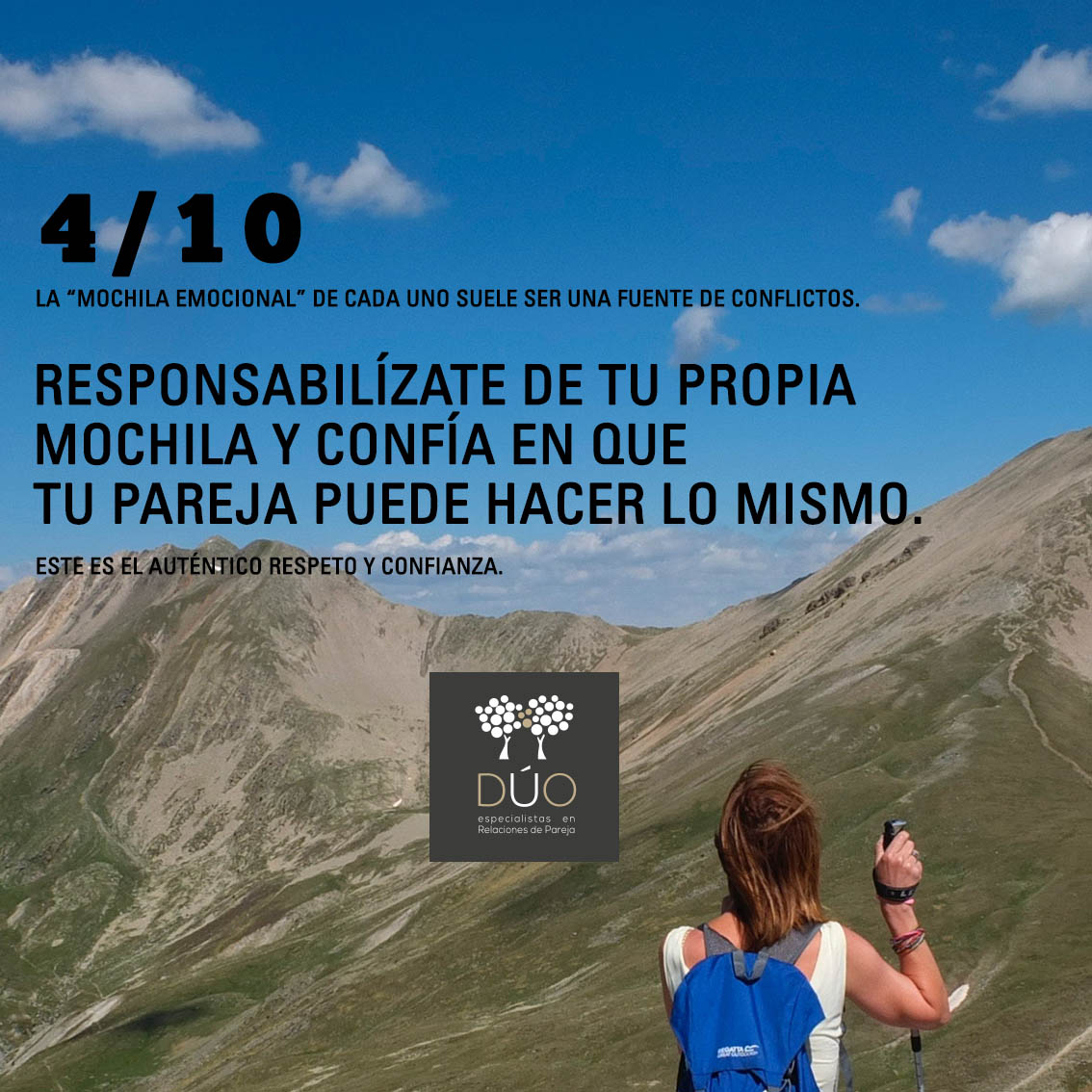 «Ya sabes que vivir en pareja significa compartir, sin embargo, también debes saber que no todo se comparte, por ejemplo, la “mochila emocional” de cada uno.